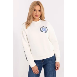 Dámska voľná blúzka je spojením pohodlia a štýlu, ideálna na každodenné aktivity. Vyrobená z vysoko kvalitnej zmesi bavlny a polyesteru, poskytuje odolnosť, mäkkosť a pohodlie pri nosení. Model so štandardnou dĺžkou a dlhými rukávmi sa skvele hodí do chladnejších dní a zahriatie zabezpečí dodatočnú ochranu pred chladom. Blúzka sa vyznačuje originálnym dizajnom vďaka potlačiam a nápisom, ktoré zdobia chrbát, prednú časť a rukávy. Klasický okrúhly výstrih jej dodáva univerzálny charakter, ktorý ladí s rôznymi štýlizáciami. Bez zapínania zdôrazňuje minimalistický a praktický strih. Je to ideálna voľba pre voľnočasové outfity, ktorá skvele ladí s džínsami, teplákmi alebo legínami, ponúkajúca trendy vzhľad a plnú voľnosť pohybu.