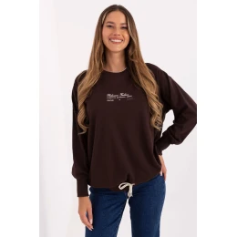 Ležérna dámska mikina vyrobená z mäkkej zmesi bavlny a polyesteru, ktorá spája pohodlie s moderným štýlom. Klasický okrúhly výstrih a dlhé rukávy so širokými manžetami zaručujú pohodlné nosenie, zatiaľ čo vďaka štandardnej dĺžke sa mikina skvele hodí ku nohaviciam aj sukniam. Moderná potlač v podobe nápisov na prednej strane dodáva celku charakter, zatiaľ čo šnurovanie v spodnej časti mikiny umožňuje prispôsobiť strih vašej postave a pridať štýlový akcent. Ideálna na každodenný, ležérny štýl.