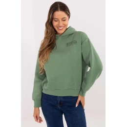 Dámska mikina v ležérnom štýle, ideálna na každodenné príležitosti. Je vyrobená zo zmesi bavlny a polyesteru a poskytuje pohodlie a príjemné teplo. Model má dlhé rukávy a praktickú kapucňu, ktorá je pre väčšie pohodlie mierne podšitá. Jemná, malá potlač na prednej strane a hladký materiál uľahčujú jej zladenie s rôznymi štýlmi.
