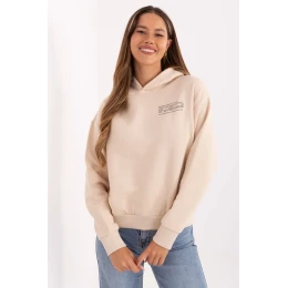 Dámska mikina s kapucňou v ležérnom štýle, ideálna na každodenné príležitosti. Je vyrobená zo zmesi bavlny a polyesteru a poskytuje pohodlie a príjemné teplo. Model s dlhými rukávmi a praktickou kapucňou je mäkko podšitý pre väčšie pohodlie. Na prednej strane je jemná, malá potlač a hladký materiál umožňuje jednoduché zladenie mikiny s rôznymi štýlmi.