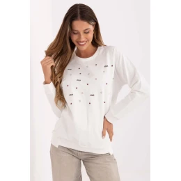 Táto elegantná dámska mikina v ležérnom štýle je ideálnou voľbou na každý deň. Je vyrobená z kvalitnej bavlny s prídavkom elastanu, je mäkká, príjemná na dotyk a poskytuje plný komfort pri nosení. Model so štandardnou dĺžkou a dlhými rukávmi má okrúhly výstrih a je bez zapínania, čo mu dodáva voľný, univerzálny charakter. Prednú časť mikiny zdobí jemná výšivka s nápismi, ktorá celému kúsku dodáva jemný ženský akcent. Skvelá voľba pre ženy, ktoré oceňujú pohodlie, jednoduchosť a štýlové detaily v každodennom oblečení.