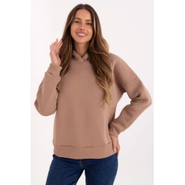 Pohodlná dámska mikina s ležérnym charakterom, ideálna na každý deň. Je vyrobená z kvalitnej bavlny s prídavkom elastanu, je mäkká, elastická a príjemná na dotyk. Hladký materiál a štandardná dĺžka zaručujú, že mikina dokonale padne a hodí sa k mnohým štýlom. Model s dlhým rukávom a kapucňou zdobenou tlačeným nápisom sa vyznačuje módnym, športovým štýlom. Vďaka zapínaniu bez zapínania a vnútornému zatepleniu poskytuje plný komfort a teplo počas chladnejších dní. Je ideálnou voľbou pre ženy, ktoré ocenia pohodlie, štýl a funkčnosť.