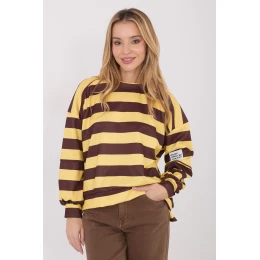Štýlová dámska mikina s ležérnym charakterom, ideálna na každý deň. Má módny pruhovaný vzor, ktorý jej dodáva moderný a univerzálny vzhľad. Je vyrobená z príjemnej viskózy s prídavkom elastanu, vďaka čomu je mäkká, elastická a pohodlná na celodenné nosenie. Model štandardnej dĺžky s dlhými rukávmi a okrúhlym výstrihom, ktorý klasicky padne na postavu. Mikina nemá žiadne zapínanie, čo zdôrazňuje jej ležérny štýl a pohodlie pri nosení. Ďalšou výhodou je ozdobná nášivka na rukáve, ktorá celku dodáva originálny charakter. Výborne sa hodí do každodennej štylizácie, a to k džínsom aj k látkovým nohaviciam alebo legínam.