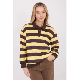 Dámská mikina Casual s nadčasovým a univerzálním stylem, ideální pro každodenní outfit. Model se vyznačuje moderním pruhovaným vzorem, který dodává celku svěžest a lehce sportovní charakter. Mikina je vyrobena z vysoce kvalitní viskózy s přídavkem elastanu, což zajišťuje měkkost, pružnost a vysoký komfort nošení. Střih s standardní délkou a dlouhým rukávem se dobře tvaruje na postavě a osvědčí se po celou sezonu. Zapínání na knoflíky vpředu typu polo ve spojení s klasickým límečkem dává mikině elegantní a zároveň volný vzhled. Jedná se o skvělý návrh pro ženy, které ocení pohodlí spojené s propracovanými detaily. Mikina skvěle ladí s džíny, látkovými kalhoty nebo sukní, vytvářející stylové outfit na každý den.