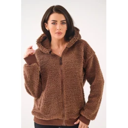 Ležérna dámska mikina typu "baranček" je ideálnou voľbou na každý deň počas chladnejších dní. Je vyrobená z mäkkého a príjemného polyesteru, poskytuje pohodlie a príjemný pocit tepla. Model štandardnej dĺžky s dlhými rukávmi je vybavený praktickou kapucňou, ktorá chráni pred vetrom a chladom. Mikina sa zapína na zips, čo zvyšuje pohodlie pri nosení a umožňuje jednoduché prispôsobenie stylingu. Príslušenstvom sú elastické manžety v spodnej časti a na rukávoch, ktoré zlepšujú prispôsobenie a zabraňujú úniku tepla. Hladký vzor dodáva mikine univerzálny charakter a vrecká sú funkčným doplnkom na drobnosti alebo na zahriatie rúk. Ideálna na každodenné ležérne kombinácie.