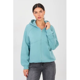 Táto dámska mikina v ležérnom štýle je pohodlnou a všestrannou ponukou na každý deň. Je vyrobená z vysokokvalitnej zmesi bavlny a polyesteru, ktorá poskytuje pohodlie, mäkkosť a odolnosť. Hladký vzor dodáva mikine klasický, nadčasový charakter a ľahko sa kombinuje s rôznymi štýlmi. Model štandardnej dĺžky s dlhými rukávmi a praktickou kapucňou je ideálny na každodenné aktivity. Zapínanie na zips uľahčuje obliekanie a úpravu a vrecká na zips zvyšujú funkčnosť. Jemný vyšívaný motív umiestnený na prednej strane na úrovni hrudníka na ľavej strane dodáva celku štýlový nádych a zdôrazňuje výnimočný charakter mikiny. Ideálna na mestské, každodenné outfity.
