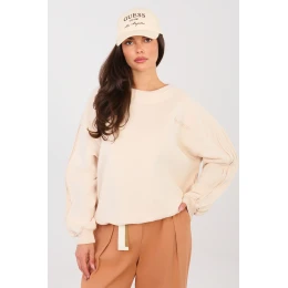 Táto dámska mikina v ležérnom štýle je skvelou ponukou na každý deň, ktorá spája pohodlie s jemnými detailmi. Je vyrobená z kvalitnej bavlny s prídavkom elastanu, je mäkká, elastická a pohodlná na nosenie, pričom dobre sedí na postave. Model štandardnej dĺžky má okrúhly výstrih a dlhé rukávy zdobené ozdobným prešívaním, ktoré mikine dodávajú moderný a originálny charakter. Konštrukcia bez gombíkov zdôrazňuje minimalistický strih a zabezpečuje maximálne pohodlie pri nosení. Vďaka hladkému vzoru je mikina neuveriteľne univerzálna, zatiaľ čo malý vyšívaný motív umiestnený na úrovni hrudníka na ľavej strane je jemným, ženským akcentom, ktorý decentne zvýrazňuje model. Ideálna je na každodenné nosenie, hodí sa k džínsom, teplákom alebo legínam.