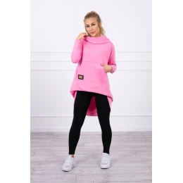 Mikina s kapucňou s dlhým chrbtom ružová