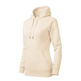 ľahko priliehavý strih s bočnými švami kapucňa s podšívkou, sťahovacia šnúrka pri krku s páskou vo farbe vonkajšieho materiálu nakladané klokanie vrecko spodný okraj a manžety rukávov z rebrového úpletu 2:2 s 5 % elastanu vnútorná strana česaná
