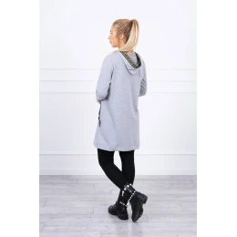 Predstavujeme vám pohodlnú dlhú mikinu s kapucňou. Mikina má zapínanie na zips a ozdobné stuhy na vreckách a kapucni. Mikina je vyrobená z vysoko kvalitného materiálu. Veľkosť je univerzálna a vyhovuje dámam, ktoré nosia veľkosť S, M alebo L.