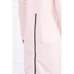 Predstavujeme vám pohodlnú dlhú mikinu s kapucňou. Mikina má zapínanie na zips a ďalší zips na chrbte. Vrecká na bokoch a dve ozdoby na zadnej strane. Mikina má našité stuhy s nápisom fashion. Mikina je vyrobená z vysoko kvalitného materiálu. Veľkosť je univerzálna a vyhovuje dámam, ktoré nosia veľkosť S, M alebo L.