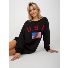 Čierna voľná mikina s potlačou a kamienkovou aplikáciou .
