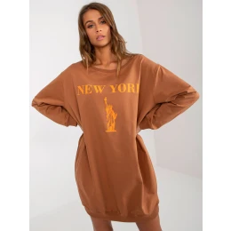 Svetlohnedá a oranžová dlhá oversize mikina s potlačou .