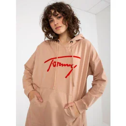 Béžová dlhá klokanka s kapucňou a nápisom .