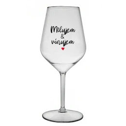 MILUJEM & VÍNUJEM - priehľadný nerozbitný pohár na víno 470 ml