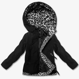 Miss TiTi (25899) Čierna dámska krátka bunda s motívom pantera