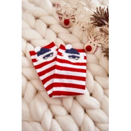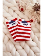 Mládež Pruhované Ponožky S Santa Clausem červene S Bílým