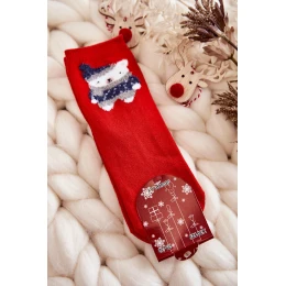 Młodzieżowe Skarpety Gładkie Z Misiem Czerwone