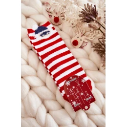 Młodzieżowe Skarpety W Paski Z Mikołajem Biało-Czerwone