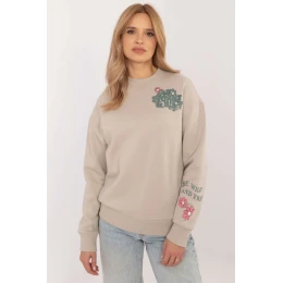Pohodlná a štýlová dámska mikina, ktorá je ideálna na každodenné nosenie. Je vyrobená z mäkkej a odolnej kombinácie bavlny a polyesteru a poskytuje pohodlné nosenie a príjemné teplo počas chladnejších dní. Vďaka svojmu ležérnemu štýlu sa mikina dokonale hodí k rôznym každodenným outfitom. Model má štandardnú dĺžku, dlhé rukávy a klasický okrúhly výstrih, čo z neho robí univerzálnu voľbu. Originálne potlače na prednej a zadnej strane a na rukávoch dodávajú mikine jedinečný charakter. Absencia zapínania zdôrazňuje pohodlný a voľný strih. Ideálna voľba pre ženy, ktoré si cenia pohodlie a módny vzhľad v ležérnych kombináciách. Skvele sa hodí k džínsom, legínam alebo teplákom.