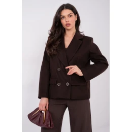Tento elegantný dámsky kabát s golierom je klasickou voľbou pre ženy, ktoré oceňujú nadčasový štýl a pohodlie. Krátky strih s dlhými rukávmi je ideálny na každodenné oblečenie aj ako doplnok k pracovnému odevu. Dvojradové zapínanie na gombíky zdôrazňuje elegantný charakter kabátu, zatiaľ čo hladká štruktúra materiálu mu dodáva všestrannosť a jemnú eleganciu. Model je vyrobený z polyesteru, je ľahký a pohodlný na nosenie a absencia podšívky z neho robí ideálny prechodný kabát na jeseň, zimu a jar. Hodí sa ku nohaviciam aj sukniam, čím vytvára štýlový vzhľad na rôzne príležitosti.