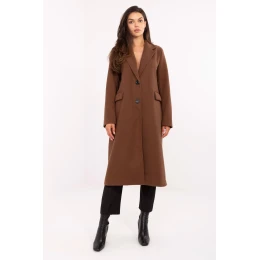 Elegantní dlouhý dámský kabát je nadčasovým modelem, který se skvěle hodí jak do každodenního nošení, tak i do pracovních stylizací nebo na společenské události. Vyrobený z polyesteru s hladkou strukturou materiálu působí minimalisticky a elegantně, zdůrazňuje klasický charakter. Kabát má vestavěné polštářky na ramenou, které dodávají postavě jasně vymezenou linii a elegantní střih. Otevírané límce a jednoradé zapínání na knoflíky zdůrazňují jeho nadčasový střih. Model je vybaven podšívkou a praktickými kapsami ukrytými pod lemiky, které dotvářejí celkový vzhled. Je to lehký, přechodný kabát, skvělý na podzim, zimu a jaro, ideální volba pro ženy, které oceňují klasiku v moderním podání.