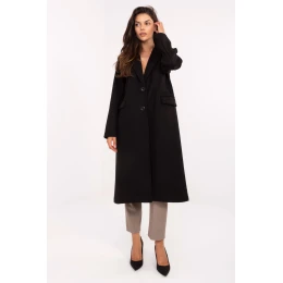 Elegantní dámský kabát s dlouhým střihem je nadčasový model, který se skvěle hodí jak na každý den, tak i do pracovních nebo společenských stylizací. Vyrobený z polyesteru s hladkou strukturou materiálu působí minimalisticky a elegantně, zdůrazňující klasický charakter. Kabát má vestavěné polštářky na ramenou, které dodávají siluetě jasně vyznačenou linii a elegantní střih. Otevíratelné límce a jednořadé zapínání na knoflíky zdůrazňují jeho nadčasový střih. Model je vybaven podšívkou a praktickými kapsami vsunutými pod límce, které dotvářejí celkový dojem. Jedná se o lehký, přechodný kabát, skvělý na podzim, zimu a jaro, ideální volba pro ženy, které oceňují klasiku v moderním provedení.