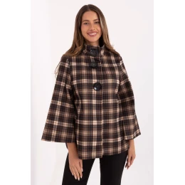 Elegantný a nadčasový dámsky kabát v károvanom dizajne, ktorý je dokonalým spojením elegancie a klasického dizajnu. Je vyrobený z vysokokvalitného polyesteru, je ľahký, príjemný na dotyk a dokonale sa hodí do každodenného štýlu. Model štandardnej dĺžky s jednoduchým strihom sa krásne prispôsobí postave, poskytuje pohodlie a voľnosť pohybu. Veľké zapínanie na gombíky dodáva celku charakter a zdôrazňuje klasický štýl kabátu. Stojatý golier chráni pred chladom a vložené vrecká sú praktickým a elegantným zakončením. Tento elegantný kabát v károvanom dizajne je ideálnou voľbou na chladnejšie dni, dokonale sa hodí k mestským aj sofistikovanejším outfitom.