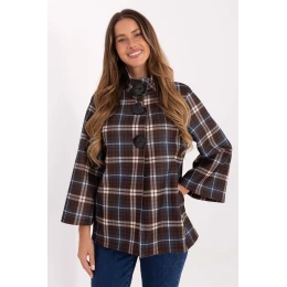 Elegantný a nadčasový dámsky kabát v károvanej farbe, ktorý je dokonalou kombináciou elegancie a klasického dizajnu. Je vyrobený z vysokokvalitného polyesteru, je ľahký, príjemný na dotyk a skvelý na každodenné nosenie. Model štandardnej dĺžky s jednoduchým strihom sa dokonale prispôsobí postave, poskytuje pohodlie a voľnosť pohybu. Veľké zapínanie na gombíky dodáva celku charakter a zdôrazňuje klasický štýl kabátu. Stojatý golier chráni pred chladom a zabudované vrecká sú praktickým a elegantným detailom. Tento elegantný kabát v károvanej farbe je ideálnou voľbou na chladnejšie dni, dokonale sa hodí k mestským aj rafinovanejším outfitom.