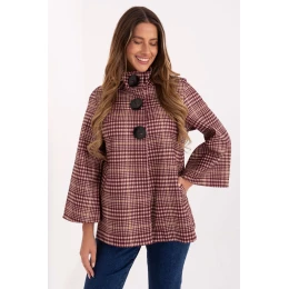 Elegantný a nadčasový dámsky kabát v károvanej farbe, ktorý spája eleganciu s klasickým dizajnom. Je vyrobený z kvalitného polyesteru, je ľahký, príjemný na dotyk a dokonale sa hodí ku každodennému oblečeniu. Model štandardnej dĺžky s jednoduchým strihom krásne sedí na postave, poskytuje pohodlie a voľnosť pohybu. Veľké zapínanie na gombíky dodáva celku charakter a zdôrazňuje klasický štýl kabátu. Stojatý golier chráni pred chladom a vložené vrecká sú praktickým a elegantným detailom. Tento elegantný kabát v károvanej farbe je ideálnou voľbou na chladnejšie dni, dobre sa kombinuje s mestským aj sofistikovaným oblečením.