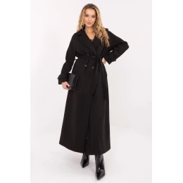 Tento dámsky dlhý kabát je elegantnou ponukou na prechodné obdobie jesene, zimy a jari. Je vyrobený z vysokokvalitného polyesteru v klasickom hladkom vzore a spája štýl a funkčnosť. Model so širokým golierom a dvojradovým zapínaním na gombíky podčiarkuje elegantný charakter každej štylizácie. Kabát má vsadené vrecká, pás na zaväzovanie v páse a podšívku, ktorá zabezpečuje pohodlie a jednoduché nosenie. Je ideálny na každodenné, spoločenské a kancelárske štylizácie, pričom dodá eleganciu a triedu každému ženskému vzhľadu.