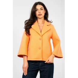 Krátký přechodný dámský kabát je ideální volbou pro ženy, které ocení ležérní styl a univerzální řešení pro každodenní nošení i do práce. Skvěle se hodí do podzimní, zimní a jarní sezóny, jako stylový doplněk mnoha outfitů. Model vyrobený z pěnového materiálu z polyesteru s přídavkem elastanu vyniká různorodou fakturou, která dodává celku moderní charakter. Tkanina je příjemná na dotek, elastická a dobře padne, což zajišťuje pohodlí při nošení. Kabát nemá žádné teplé výstelky ani vyplnění, díky čemuž se skvěle hodí jako lehká vrchní vrstva v přechodných obdobích. Střih s krátkou délkou a 3/4 rukávem jemně podtrhuje siluetu a dodává outfitu lehkost. Klasický límec s límcovými klapami přidává eleganci, a jednoduché zapínání na knoflíky zdůrazňuje nadčasový charakter modelu. Praktické kapsy zvyšují funkčnost a pohodlí nošení. Jedná se o všestranný kabát, který lze snadno sladit jak s elegantními kalho