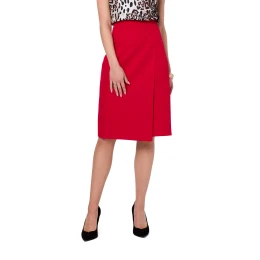 Klasická áčková sukňa s asymetrickou dvojitou prednou časťou. Sukňa je celá podšitá a zapína sa na krytý zips.