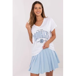 Ležérna dámska súprava pozostávajúca z trička a plisovanej sukne, ktorá je ideálna na každodenné nosenie. Tričko vyrobené z mäkkej bavlny s prídavkom elastanu má krátke rukávy, srdiečkový výstrih a modernú potlač na prednej strane, ktorá celému outfitu dodáva charakter. Mini sukňa s vysokým pásom je vyrobená z rovnakého príjemného materiálu a má vsadené šortky, ktoré zabezpečujú voľnosť pohybu. Plisovaná konštrukcia dodáva súprave ľahkosť a ženskú eleganciu a vytvára súpravu, ktorá spája pohodlie s moderným ležérnym štýlom.