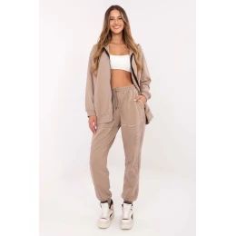 Dámska súprava v ležérnom štýle, ktorá je ideálna na každodenné príležitosti. Je vyrobená z bavlny s prídavkom elastanu a poskytuje pohodlie a voľnosť pohybu. Mikina so zapínaním na zips má praktickú kapucňu a vrecká na zips a jemná potlač dodáva súprave módny nádych. Nohavice s dlhými nohavicami a uzavretými manžetami majú vysoký pás a šnúrku v páse, čo zaručuje ideálne prispôsobenie. Vďaka bočným vreckám na zips je súprava nielen pohodlná, ale aj funkčná. Je to skvelá voľba pre ženy, ktoré oceňujú štýl a pohodlie v jednom.