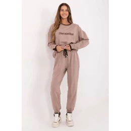 Dámska teplá súprava v ležérnom štýle ideálna na každodenné príležitosti. Je vyrobená z bavlny s prídavkom elastanu, vďaka čomu poskytuje mäkkosť, pohodlie a voľnosť pohybu. Mikina s dlhými rukávmi a okrúhlym výstrihom je na prednej strane zdobená výšivkou a nápisom, čo dodáva celej súprave moderný charakter. Nohavice s dlhými nohavicami ukončené manžetami majú vysoký pás a bočné vrecká, vďaka čomu sú pohodlné a praktické. Ide o súpravu, ktorá spája pohodlie s moderným štýlom a osvedčí sa pri každodennom nosení.