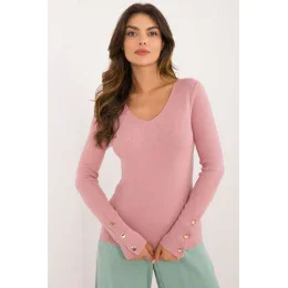 Tento dámsky ležérny sveter vyrobený z kvalitnej zmesi viskózy, polyamidu a polyesteru zaručuje pohodlné nosenie a odolnosť. Hladký vzor a klasická dĺžka robia z tohto kúsku oblečenia univerzálny základ šatníka. Sveter má dlhé rukávy zakončené ozdobnými gombíkmi na zápästí, ktoré dodávajú jemný elegantný akcent. Výstrih do V zvýrazňuje krk a dodáva celému kúsku ženský nádych. Skvelá voľba do kancelárie aj na každodenné vychádzky.