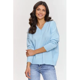 Tento základní svetr je skvělou volbou pro ty, kteří hledají nadčasové oblečení, které kombinuje eleganci s pohodlím. Vyrobený z vysoce kvalitní viskózy s přídavkem PBT, poskytuje nejen pohodlí nošení, ale také vynikající trvanlivost a odolnost proti mačkání. Výstřih V decentně zdůrazňuje krk, dodává celku lehký a elegantní charakter, volný střih a dlouhé rukávy zase zajišťují, že se jedná o pohodlný kousek oblečení. Lemování na rukávech a dole přidává moderní vzhled a zajišťuje, že svetr dobře drží tvar. Viskóza je materiál, který je šetrný k pokožce, prodyšný a jemný na dotek, ideální na každou roční dobu. Na druhou stranu PBT (polyethylentereftalát) je syntetické vlákno, které zvyšuje pružnost materiálu, zlepšuje jeho odolnost proti roztažení a mačkání. Díky PBT si svetr udržuje svůj tvar déle a je snadno udržovatelný. Díky kombinaci elegantního výstřihu V a elastického materiálu je svetr velmi všestranný.
