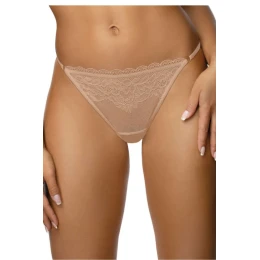 Mega minimalistické a sexi tangá Estelle sú k dispozícii v dvoch farebných variantoch: bielej a čiernej. Čipka na prednej strane, tenké pásiky na bokoch a sieťovaná vložka vzadu. Tanga sa dokonale prispôsobia telu a zvýraznia príťažlivosť.