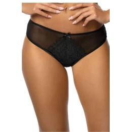Klasické tangá Estelle, ktoré vás potešia svojou jemnosťou, sa dodávajú v dvoch farebných variantoch: bielej a čiernej. Čipkované vsadky na predných stranách v kombinácii s elastickou sieťovinou. Čipkovaný zadný diel. Tanga sa dokonale prispôsobia telu a zvýraznia vaše pôvaby.