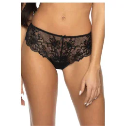 Zvodné a zvodne priehľadné tangá Nell vyrobené výhradne z jemnej čiernej čipky. Sexuálne obopínajú ženské krivky. bavlnený klin.