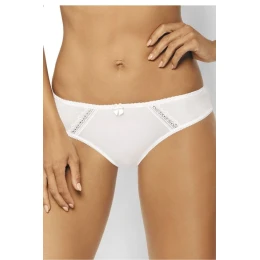 Biele tangá Elaine v klasickom dizajne vyzerajú skvele na každom zadočku. Tanga sú vyrobené z ľahkého, jemne lesklého trikotového úpletu. Stredná časť predného dielu je zdobená jemnými háčkovanými vsadkami. Spodná časť nohavičiek je ukončená ozdobným pásikom. V strede je krásna saténová mašľa.