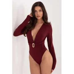 Elegantné body v štandardnej dĺžke vyrobené z prevažne mäkkého a na dotyk príjemného polyesterového materiálu s prídavkom elastanu, ktorý zaručuje ideálne prispôsobenie sa postave. Model má hlboký výstrih v tvare srdca, ktorý zvýrazňuje ženský dekolt a poprsie. Pod poprsím sa nachádza ozdobný záves s kovovou aplikáciou, ktorý celku dodáva elegantný charakter. Vďaka dlhým rukávom a hladkému, elegantnému vzoru, ktorý je dominantou, je toto body skvelým doplnkom ku klasickej štylizácii aj večerným outfitom. Zapína sa na háčik, ktorý zaručuje pohodlie pri nosení a stabilné priliehanie na telo. Ideálna voľba pre ženy, ktoré ocenia štýl, pohodlie a jemne zmyselné detaily.
