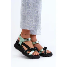 Neobvykle štýlové dámske sandále s platformou na klinu. Praktické zapínanie na suchý zips zaručuje rýchle a pohodlné prispôsobenie sa nohe. Stuha vpredu dodáva šarm a jemnosť. Tento model určite upúta pozornosť!