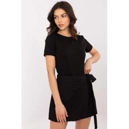 Dámske tričko v ležérnom štýle, ideálne na každý deň. Je vyrobené z mäkkej zmesi bavlny a elastanu, poskytuje pohodlie a pružnosť, prispôsobí sa postave. Hladký materiál zdôrazňuje jednoduchosť a všestrannosť modelu. Krátke rukávy a okrúhly výstrih vytvárajú klasický strih, ktorý sa hodí k mnohým outfitom. Ozdobná výšivka na rukávoch dodáva tričku jemný, ale originálny akcent a dodáva mu osobitý charakter. Ideálna voľba na každodenné, ležérne oblečenie.