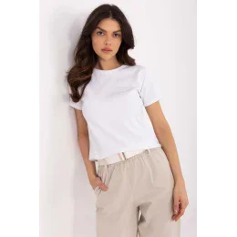 Dámske tričko v ležérnom štýle, ideálne na každý deň. Je vyrobené z mäkkej zmesi bavlny a elastanu, poskytuje pohodlie a pružnosť, prispôsobí sa postave. Hladký materiál zdôrazňuje jednoduchosť a všestrannosť modelu. Krátke rukávy a okrúhly výstrih vytvárajú klasický strih, ktorý sa hodí k mnohým štýlom. Ozdobná výšivka na rukávoch dodáva tričku jemný, ale originálny akcent a dodáva mu jedinečný charakter. Ideálna voľba na každodenné, ležérne oblečenie.