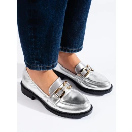 Módne dámske strieborné mokasíny na platforme