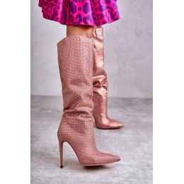 Modne Kozaki Na Szpilce Z Cyrkoniami Różowe Lovisa