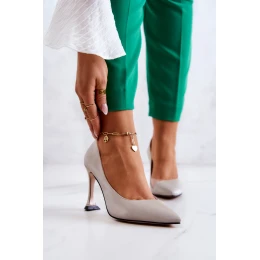 Modne Skórzane Szpilki Jasnoszare Tamira