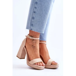 Modne Zamszowe Sandałki Na Kwadratowym Obcasie Beżowe Merila